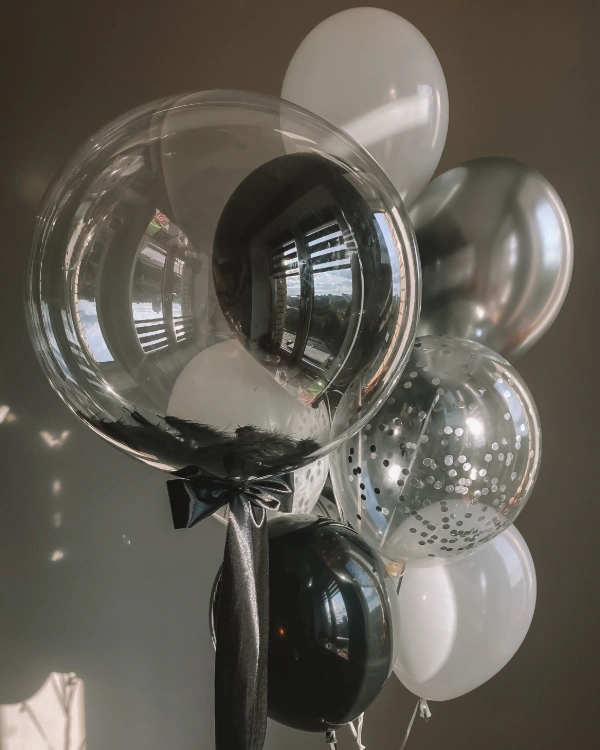 Воздушные шары, наполненные перьями, могут символизировать эмоциональные полеты фантазии. Цвета красного, золотого и серебряного выражают всю сложность этих сильных чувств, которые невозможно выразить словами. С воздушным шаром, полным перьев, вы сможете позволить своим истинным эмоциям улететь и распространить вокруг себя счастье и любовь!